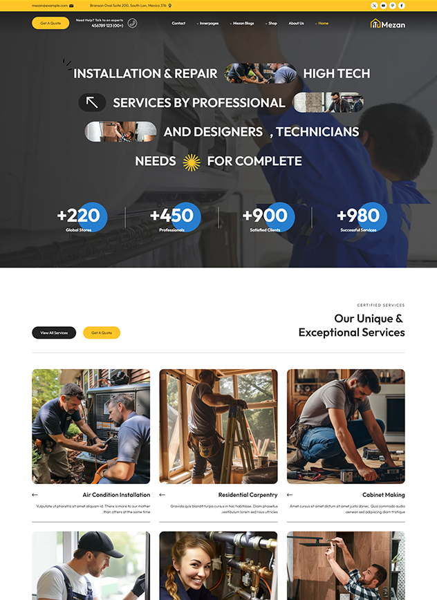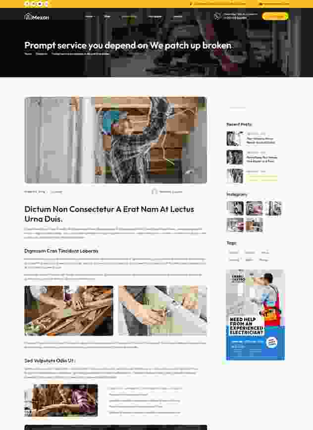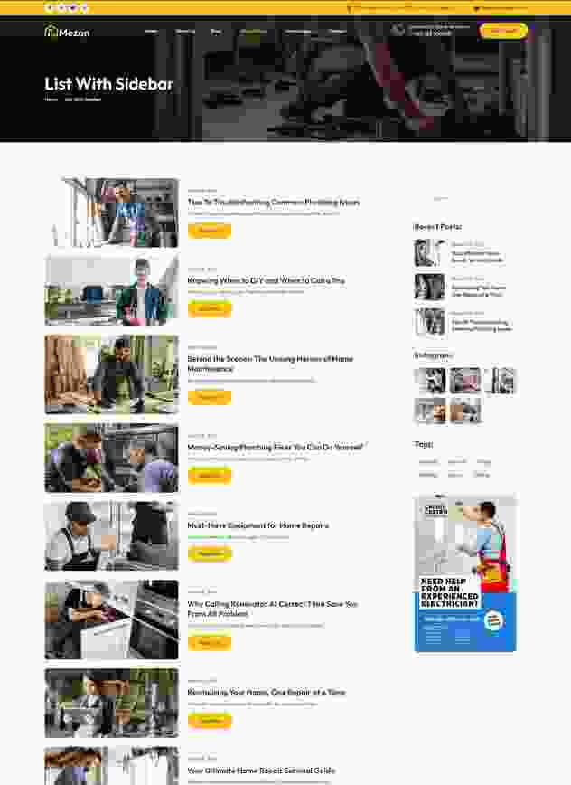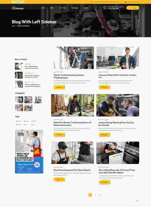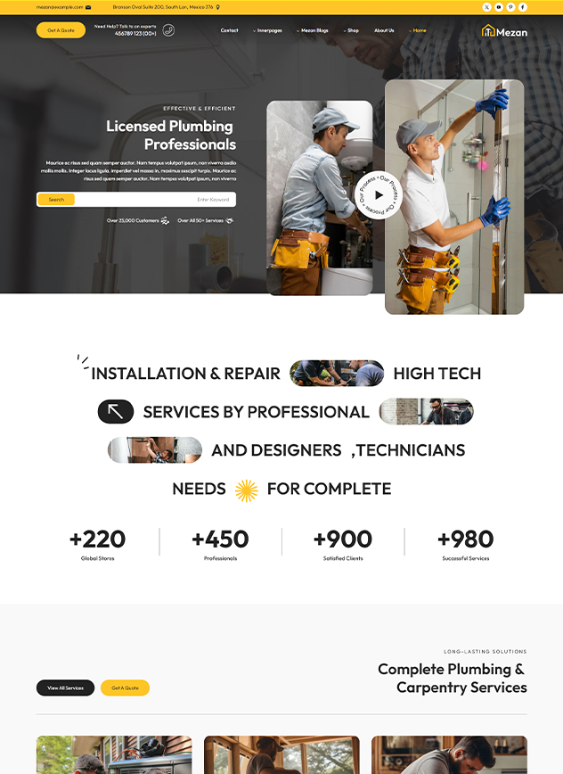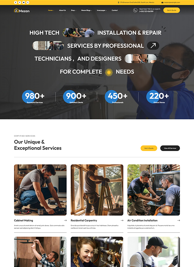 Mezan - WordPress theme is Handyman Solution for Hassle-Free Repairs and Maintenance. Mezon is a professionally crafted WordPress tailored for handyman and repair service, CCTV, Mobile Gadgets, Laptops, Plumbing, Electrical and Mechanical,